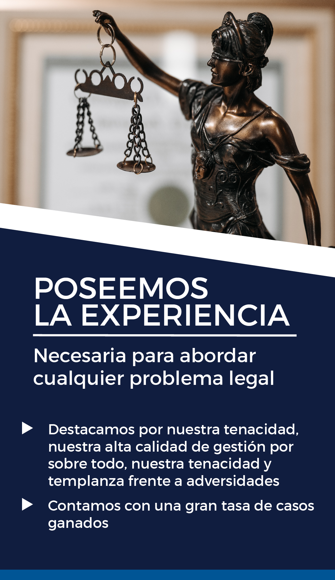 Se caracteriza por la preparación especializada y postgrados en las distintas áreas más sensibles de la problemática jurídica, gracias a la preparación de cada uno de nuestros profesionales nos destacan como un estudio eficiente, resolviendo los desafíos que se nos presenten, siempre respetando los valores de las personas y de nuestros colaboradores, brindando un trato más cercano y confiable.